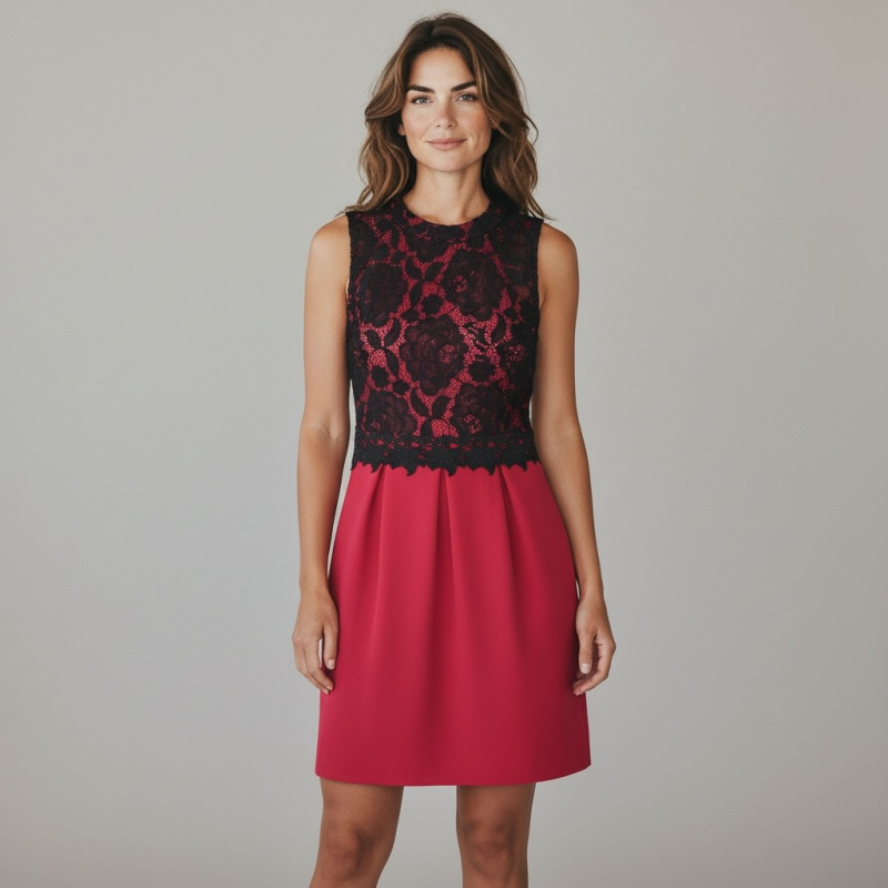 Dressplaner Kleid Spitze schwarz/weinrot