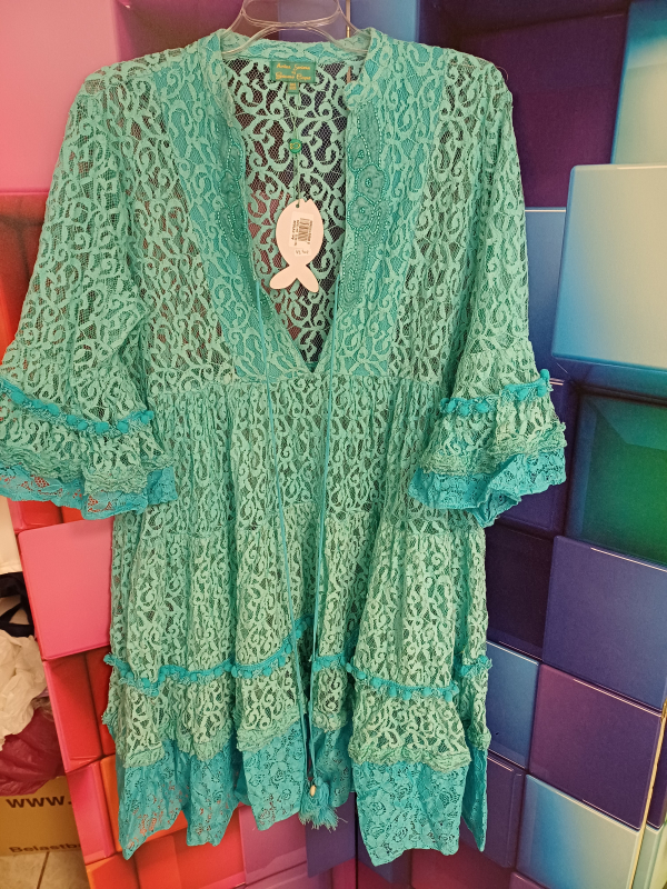 Spitzenkleid türkisblau in Einheitsgröße (passt bis Gr. 42/44