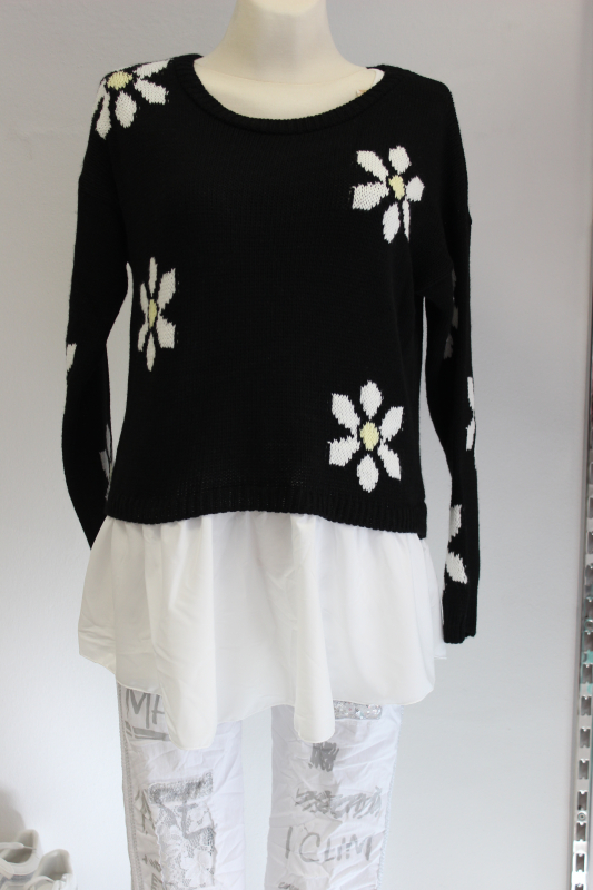 Be`lieve Strickpullover mit Bluseneinsatz schwarz in Einheitsgröße (passt bis Gr. 42/44)