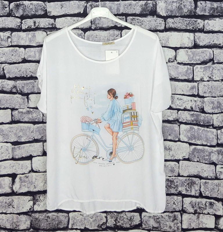 Kurzarm-Shirt Motiv Fahrrad in Einheitsgröße (passt bis Gr. 42/44
