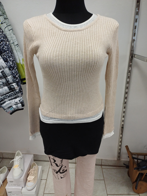 Kurzpullover 2-Lagen-Optik Farbe beige in Einheitsgröße (passt Gr. 32 bis 38)