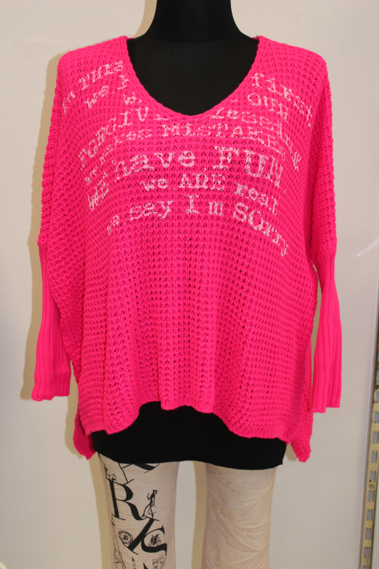 Pullover GlamStyle pink mit Schrift in Einheitsgröße (passt Gr. 42 bis 52)